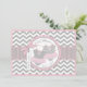 cinza de chic e impressão de chevron branco com contraste rosa e um jumper de bolinhas giro com tutu cor-de-rosa e arco de aparência 3D e faixa para a placa de convite de chá de fraldas para meninas gêmeas.