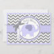 Cinza de chic e impressão de chevron branco com contraste de lavanda e um elefante de lavanda giro com pássaro empoleirado atrás e arco de aparência 3D e placa de convite para chá de fraldas de menina de fita.