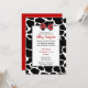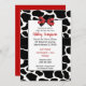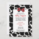 Convite para Chá de fraldas Impressão vermelho de vaca com arco vermelho e preto pontilhado, impressões de vaca e fita preta e branca. Convidado neutro de gênero com um dorso vermelho. Mamãe vai adorar esse convite adorável. Use nossa modelo fácil para adicionar seus detalhes.