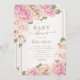 Convide seus convidados de chá de fraldas em estilo com este elegante convite floral de cor d'água personalizado com rosas cor-de-rosa pincel pintados à mão, esticados e rosa com verde empoeirado. Personalize com seu nome e todos os detalhes de seu partido em uma caligrafia moderna de script rosa gold. Os melhores votos para o seu casamento e casamento! Desenhada por Susan Coffey.