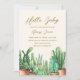 chá de fraldas de cacto de cores aquáticas boho minimalista, chá de fraldas de cowboy, tema do chá de fraldas de jardim, recurso design com hóspede cacto de cor aquática e texto " Hello Baby". este design perfeito para o chá de fraldas de bebês e meninas, design de chá de fraldas neutro em sexo. você pode personalizar seu próprio texto através de " personalizar este modelo".