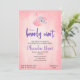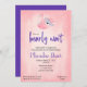 O convite para chá de fraldas da menina koala é tão fofo. Bonito fundo rosa com um urso coala dormindo. Rosa e roxo com o lado de trás roxo. Todas as informações pessoais podem ser editadas.