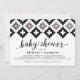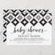 Perfeito para a futura mãe, este convite para chás de fraldas apresenta um padrão geométrico que lembra os padrões de cobertor indianos em preto e branco, acentuado com falso brilho prateado. Trend forward black and white é o perfeito neutro para o casal esperando até o grande dia para descobrir se eles estão tendo um filho ou uma garota.