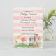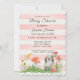 O coelho francês da orelha do Lop da aguarela doce, pintado mão que jogam em um campo de flores selvagens e um teste padrão listrado largo da aguarela do rosa cor-de-rosa através da imagem, convidam seus convidados a regar seu bebé com os presentes. O verso tem um teste padrão floral pintado mão criado para coordenar com esta coleção de arte por Audrey Jeanne Roberts. Copyright.