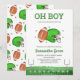Prepare-se para receber o seu futuro Vice-Presidente com o nosso Convite para Chás de fraldas de Todos os Estrelas. Este convite ousado e festivo apresenta um futebol e um capacete no centro, cercado por estrelas marrom e verdes lúdicas que acrescentam energia e charme. O fundo da design mostra um campo de futebol, dando-lhe uma autêntica vibração do dia de jogo que é perfeita para um chá de fraldas com tema desportivo. Comece a comemorar em estilo com este convite de todas as estrelas que certamente impressiona os seus convidados! BBS1080