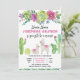 Prepare-se para a festa com este adorável convite para Chás de fraldas Llama. Apresentando dois lhamas doces cercados por um verde-luxuoso, cacto aquicolor com florais cor-de-rosa macio e florais alegres. Perfeito para um chá de fraldas de cactus ou de boho, este design combina encanto lúdico com elegância floral para celebrar sua futura mãe no estilo. Traga algum lama divertido e talento floral para seu chá de fraldas com este belo convite que certamente fará seus convidados sorrir! BBS140