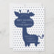 silhueta de girafa azul-marinho com detalhes de evento dentro da forma. O fundo marinho azul polkadot aumenta a doçura deste convite. Tão doce quanto pode ser. Um convite perfeito para um evento perfeito. Estilo neutro em termos de gênero. 100% de satisfação do cliente na Zazzle todos os dias.