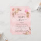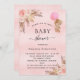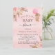 Para um chá de fraldas moderno estilo boho. Um plano de fundo metálico de gradiente cor-de-rosa-claro. Decorado com ouro rosa e flores cor-de-rosa, rosas, grama-pampas e ursinha-peluche segurando um balão rosa. Personalize e adicione um nome e detalhes da parte.