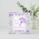 Garota Chá de fraldas Bonita com Flores de Mouro Roxas, Lavanda de Lace Branco. Heart Ribbon e Pearl Lace Arco convite, novo bebê, garota