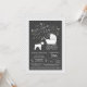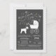 Inclua o grande irmão ou irmã peluche na celebração com este adorável design de chá de fraldas de cães da Miniatura Schnauzer!  Perfeito para um amante de cachorro com um bebê a caminho.  A Miniatura Schnauzer está ao lado de uma adorável carruagem de safra.  O fundo de cinza de quadro-negro torna-o perfeito para um chá neutro ou coeso!