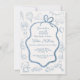 A mão branca moderna desenhou os convites para o chá de bebê da Tile de jouy. Possui fita polka-a-ponto e estrutura de arco em azul pálido e poeirento com itens de bebê esquentados. Excelente para um bebê ser. Para fazer mais mudanças, vá para Personalizar este modelo. Na parte inferior você verá "Quer personalizar este design ainda mais? Clique em EDIT usando a ferramenta Design. A partir daí você pode mudar algumas fontes e algumas cores, mover coisas ou excluir o que você precisa.