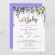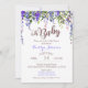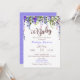 Cartão moderno do convite do chá de fraldas da gota floral roxa elegante das glicínias da aguarela.