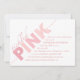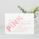 Gráfico e contemporâneo, este design apresenta "PINK com tique" soletrado em padrões divertidos de listras e bolinhas em um esquema de cores totalmente cor-de-rosa. Perfeito quando o bebê é uma menina. Cada linha se adapta aos detalhes de suas celebrações e faz uma declaração limpa e moderna.