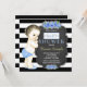 Adoráveis flores azuis e doce bebê bebezinho vintage convites para bebês. Este belo convite de chá de fraldas de quadro de referência para rapazes antigos é facilmente personalizado para o seu evento, adicionando os seus detalhes no estilo de letra e cor, e a redação da sua escolha.