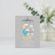 Um convite de chá de fraldas moderno que ilustra um berço móvel com balão azul de ar quente, nuvens, estrelas, arco-íris, sol e lua.