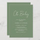 Convite moderno verde-sábio/chá de fraldas verde-oliva apresentando um simples design com "Oh Baby" em uma tipografia de script no estilo rústico. Este elegante convite neutro de gênero com um layout minimalista é excelente quer você esteja tendo um menino ou uma garota.