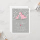 Personalize este Convite para Chás de fraldas Moderno Na moda com uma imagem original de dois dinossauros cor-de-rosa fofinhos, um maior e outro menor em um fundo de rosa claro. À volta deles estão a chutar corações brancos. Este convite é perfeito para um chá de menina.