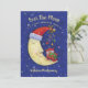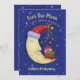 Este convite para chás de fraldas de Natal é perfeito para chás de fraldas de Natal. Esta design apresenta uma lua vestindo um chapéu de Papai Noel com um bebê em um berço descansando nele. O fundo é azul com estrelas e flocos de neve. O texto da frente diz "Sobre a Lua É um Chá de fraldas em Honra de" com um nome por personalização abaixo. No verso estão todos os detalhes do seu chá sobre um fundo azul correspondente com estrelas e flocos de neve. Projetado pelo artista mundialmente famoso ©Tim Coffey.