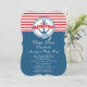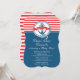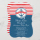 Comece seu barco à beira-mar náutico de verão chá de fraldas com nosso convite para chá de fraldas de navios contemporâneos. Nossas naves na moda e populares ahoy é um convite para chás de menino apresenta uma âncora azul em um círculo de corda, colocado em uma faixa vermelha e branca colorida e fundo azul. Perfeito para chá de fraldas temático de veleiro. Sacudir o convite para uma faixa vermelha e branca correspondente com uma âncora. Disponível em nosso compro em outras opções de cores