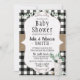 Este convite é enfeitado com algodão de aquarela e eucalipto verde e um padrão de verificação de búfalos em preto e branco com cinzas neutras, brancas e marrom de café. Todo o texto é editável - sinta-se à vontade para mudar o texto de um chá de casamento, aniversário, etc.