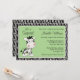 Um convite para chá de fraldas de zebra doce, com uma ilustração de zebra esbranquiçada sobre fundo verde. Perfeito para uma festa de chá de fraldas neutra do gênero! Gráficos © Scrappin Doodles em www.scrappindoodles.com