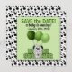 Salve a data para aquele chá de fraldas especial! Quando sua família e amigos descobrirem que você está tendo um bebê, eles querem planejar um chá de fraldas! Deixe-os! Escolha um encontro e deixe todos os seus convidados saberem meses antes, para que você tenha certeza de que tem todos os que são importantes no seu dia especial! Tema de cachorrinho dalmaciano verde, preto e branco.