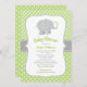Convite Chá de fraldas Neutro do Elefante Verde Moderno