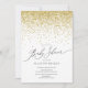 Convite moderno de chá de fraldas com brilho dourado com fonte de caligrafia contemporânea e um brilho de coordenação para um toque especial extra.