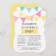 Comece seu chá de fraldas atual neutro em relação ao gênero com nosso convite para chás de fraldas moderno de bunting amarelo, rosa e azul. Nosso convite para na moda e chá de tendência apresenta um belo pennant de bunting para um chá de fraldas neutro em relação ao gênero. Sacudir o convite para encontrar bolinhas amarelas populares correspondentes de volta para um toque especial extra.