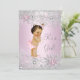 Chá de fraldas de Brunette Girl. Garota Chá de fraldas Rosa Doce e Prata Winter Wonderland Sweet Baby Girl Invitation. Design de floco de neve de diamante de pérolas elegante. Notem, por favor, que todas as imagens planas não têm joias reais!