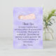 Cartões de agradecimentos de chá de fraldas personalizado adorável. Lilás bebê, com um bebê precioso deitado num cobertor roxo. Obrigado pelo sentimento que diz: "Obrigado por vir ao meu chá de fraldas e ajudar a celebrar a chegada do nosso novo bebê. Obrigado pelo maravilhoso presente. Sua gentileza e generosidade são muito apreciadas. Aguardamos com expectativa a introdução do nosso pequeno em breve." Todos os nossos produtos podem ser personalizados para atender às suas necessidades sem custos adicionais. Apenas entre em contato conosco através da nossa loja. Coordenando os produtos disponíveis: Apenas nos pergunte!