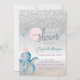 O convite de chá de fraldas bonito apresenta polvo de aquarela com balão sobre fundo de cinturão prateado. Esses convites para chuveiros de bebês são facilmente personalizados para seu evento simplesmente adicionando seus detalhes.