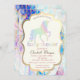 Convite holográfico para chá de fraldas de unicórnio. Estes convites para o chá de bebê unicórnio são facilmente personalizados para o seu evento simplesmente adicionando os seus detalhes.