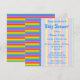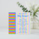 Este convite de chá de fraldas pode ser adequado se o bebê for um menino ou uma menina. Um padrão de listras em cores do arco-íris, com listras claras atrás do escrevendo. O texto está em azul e pode ser personalizado para criar um convite personalizado. Um design alegre e colorido.