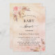 Para um chá de fraldas moderno estilo boho. Um fundo rosa dourado, rosado, rosado e roxo, com aspecto metálico. Decorados com ouro rosa e flores, rosas, grama-pampas. Personalize e adicione um nome e detalhes da parte.