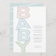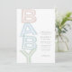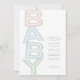 Este convite para chás de fraldas simples e giro apresenta uma pilha colorida da palavra bebê e inclui. Celebre a mãe a ser com este doce convite que combina com uma variedade de decorações e é excelente para um chá de fraldas de menino, um chá de fraldas de menina ou um chá de fraldas neutro. Também estão disponíveis suprimentos coordenadores de chá de fraldas. Este convite para chás de fraldas pastel também está disponível como um download de convite digital.