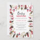 Bonito convite ao Chá de fraldas com bonito cor d'água penas de vassoura tribais a rosa, cinza e ouro com um fundo cor-de-rosa-escuro correspondente.