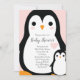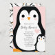 Convite Chá de fraldas Pinguim Bonito Menina Rosa
