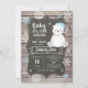 Vejam esses adoráveis convites para urso polar azul. Este belo convite temático de inverno apresenta uma ilustração fofinha de urso polar com um chapéu azul de inverno. O convite é feito com um fundo de madeira e quadro e flocos de neve criando um confortável toque rústico. Personalize seu convite com o nome de convidado de honras e detalhes do evento em uma bela tipografia decorativa. As cores incluem azul, branco, marrom e preto (veja a imagem para referência de cor). Visite nossa loja em https://www.zazzle.com/store/printedhearts para produtos que combinam, como convites, notas de agradecimento, solicitação de livro - livros para cartão de inserção de bebês, favores de pop de bolo, favores de biscoitos, cartões de rifa de fralda, etiquetas de favor, etiquetas de garrafa de água, etiquetas de endereço, envelopes, decorações e muito mais!