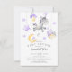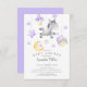 Adorável bebê móvel com um convite de chá de fraldas de pônei. Sacudir nosso chá de fraldas convidar para ver um roxo coordenado de volta para um toque especial extra.