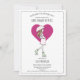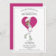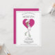 Um chá de fraldas branco, cor-de-rosa-escuro e branco, por convite de correio, com uma futura mãe caminhando com uma cobertura guarda-chuva sobre um coração cor-de-rosa escuro e rosa-escuro na parte de trás do convite.