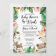 Celebre a chegada da sua bebê precioso com este elegante, chic e bonito 'Chá de fraldas por Mail Invitation', com bonitinhos animais de safari da selva amigável, com máscaras em lindas flores tropicais de aquarela com fundo de selva verde. Essa modelo é perfeita para quem vive a longa distância dos entes queridos, mas ainda quer torná-la especial para a mãe ou os pais ser por chuvei-los com amor e presentes. Todos os textos estão pré-organizados para que você personalize fácil e rapidamente com os detalhes do seu chá de fraldas.