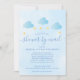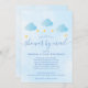 Apresentando nuvens lindas e azuis bebê e estrelas ouros em cordas, num fundo azul de bebê macio, este chá de fraldas bonito, aspersão ou chá por correio eletrônico é perfeito para todos os pequenos que estão a caminho. Adicione seus detalhes de celebração em texto elegante para criar o convite perfeito. Projetado por Thisnotme©