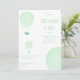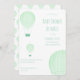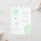 Um chá de fraldas por correio com uma série de balões verdes e de ar quente. O convite mostra balões verdes, de ar quente e macios com texto relaxado e arejado. O verso do convite mostra um padrão de balões de ar quente. Todas as palavras podem ser personalizadas.