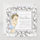 Bonito convite a chás de fraldas azul e prateado. Este belo convite para chá de fraldas de príncipe azul é facilmente personalizado para o seu evento simplesmente adicionando detalhes do seu evento, estilo de fonte, tamanho de fonte e cor e texto. Observe que todos os adesivos, cartões e designs de convite que você encontrará no Zazzle são gráficos impressos sem joias reais, arcos, levantados, gravados, ou peças ou peças adicionadas.