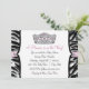 Convite Chá de fraldas preto rosa-zebra princesa rosa