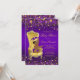 O chá de fraldas do príncipe afro-americano foi convidado com um lindo menino étnico afro-americano vestindo uma fralda roxa e uma coroa roxa e dourada sentada em uma bela cadeira de ouro em um roxo rico e um fundo brilhante de confete dourado. Este belo convite para chás de fraldas roxo e dourado é facilmente personalizado para o seu evento simplesmente adicionando os seus detalhes no estilo de fonte, cor e texto da sua escolha. Este é um design impresso sem brilho real, confete, joias, etc.