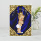 Elegante, ornamentado rico real azul e chá de fraldas de príncipe dourado. Este lindo giro de ouro com fundo azul-real de cetim, adorável menino loiro com uma coroa dourada azul-real e um convite de chá de fraldas dourado é facilmente personalizado para o seu evento simplesmente adicionando seus detalhes no estilo de letra e cor, e a redação de sua escolha.