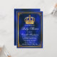 Chá de fraldas real azul e ouro príncipe com bonito coroa azul real e dourada em um belo fundo azul real e ouro. Você pode alterar o texto conforme necessário para o seu evento. Impressão em papel brilhante para obter melhores resultados.