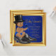 Real azul e ouro O pequeno banho de bebezinho étnico com adoráveis menininhos étnicos africanos vestindo uma fralda preta, chapéu superior e gravata arco sentados em um par de calçados masculinos em um lindo fundo azul e ouro real. Estes adoráveis convites para bebês de homem pequeno são facilmente personalizados para o seu evento simplesmente adicionando os seus detalhes no estilo de letra e na redação da sua escolha. Você também pode remover o plano de fundo e adicionar sua própria cor de fundo. Este é um design impresso sem brilho real, ouro, diamantes, etc.
